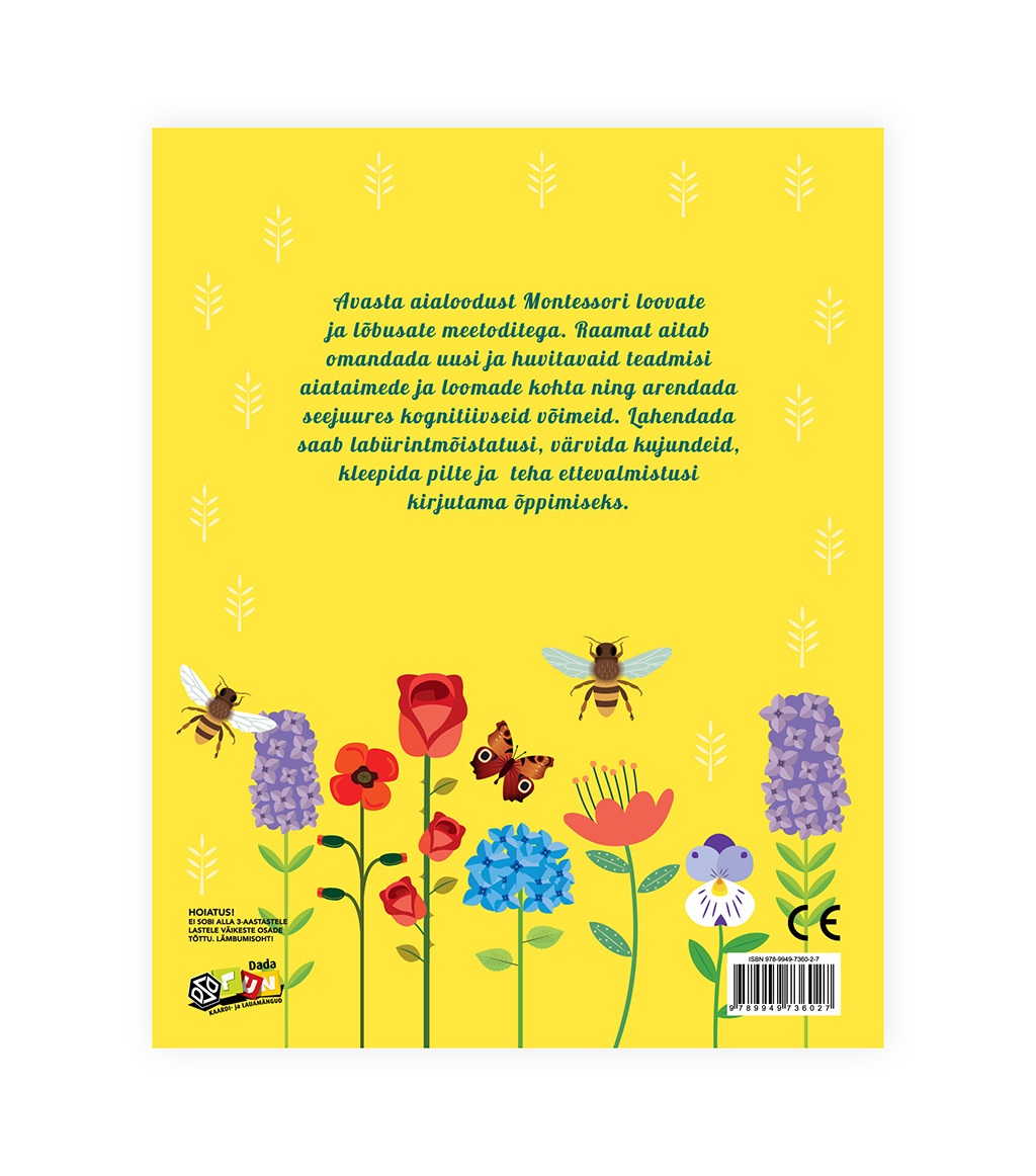 Montessori pedagoogika märksõnad on loovus, valikuvabadus, lihtsus, mitmekesisus ja õpirõõm. Kompimis-, kuulmis- ja nägemiskogemuste saamine on hädavajalik. Ülesannete raskusaste muutub raamatus järk-järgult keerulisemaks, kuid lubage lapsel alustada just sellelt leheküljelt, mis talle meeldib.