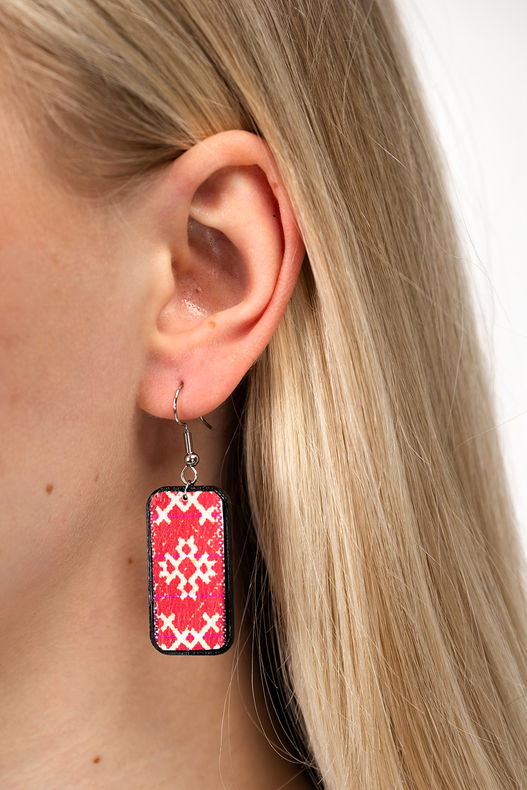 Kõrvarõngad on puidust ja trükitud. Kõrvarõngad on kerged.