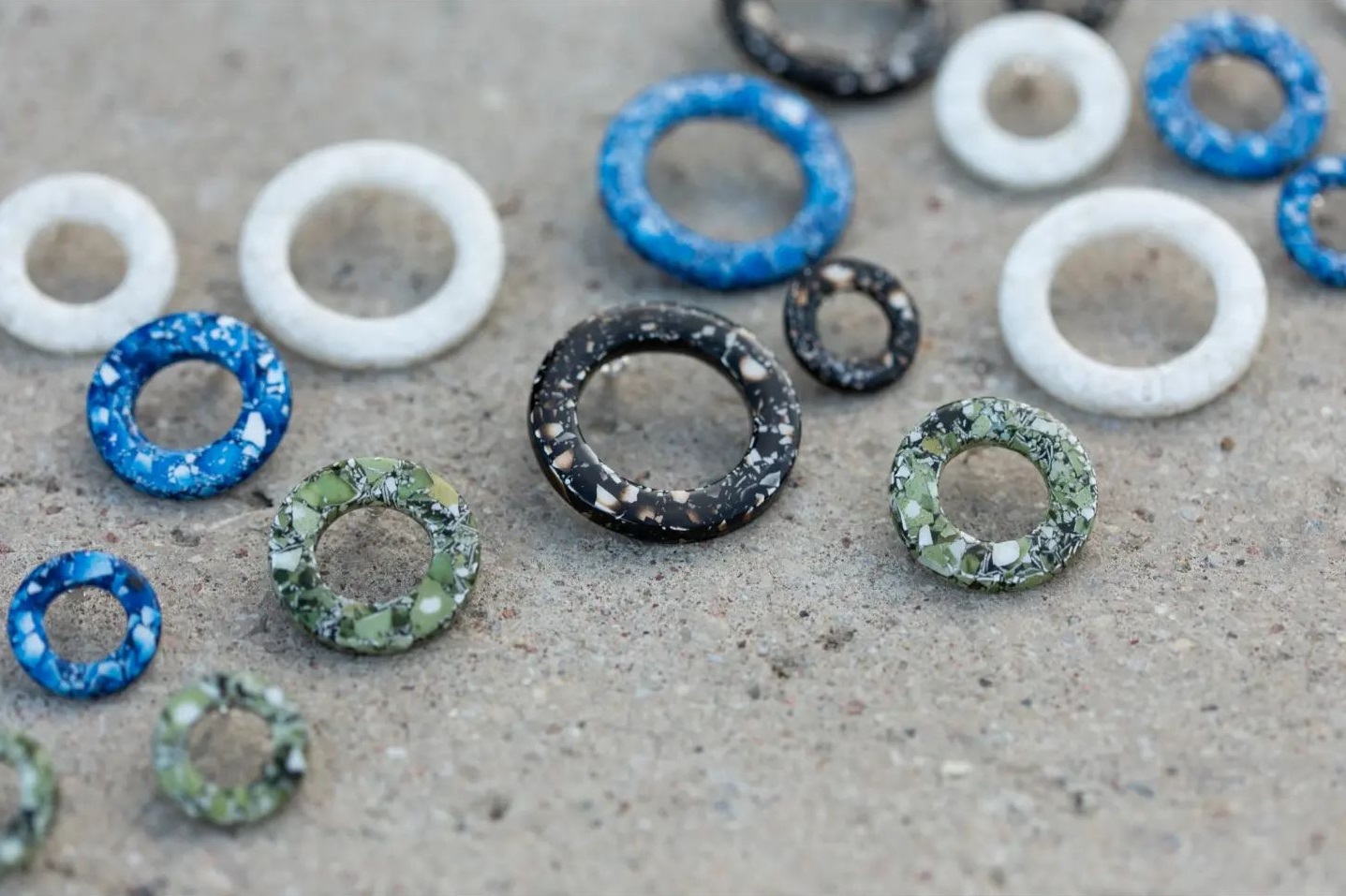 Kõrvarõngad on valmistatud käsitööna, kasutades bioloogilisi materjale – kodulindude munakoori ja biovaiku, mis on toodetud taimsetest või teistest põllumajanduslikest saadustest. Munakoori on purustatud ja töödeldud vaiguga. Segu on pandud vormidesse, mille disain jälgib muna kuju. Ehte pind on lihvitud, lakitud vaiguga ja poleeritud. Kõrvarõngaste kinnitused on hõbedast.