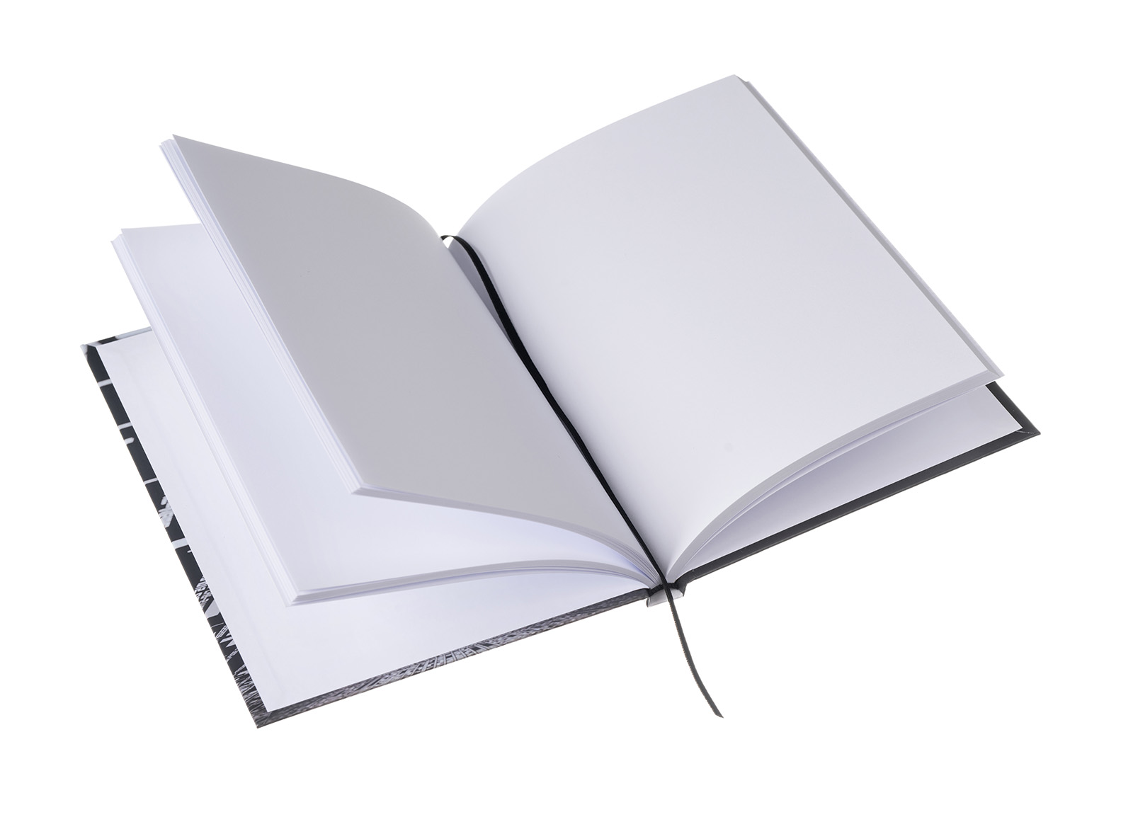 Märkmik on kõvakaanega ja seest valgete lehtedega.