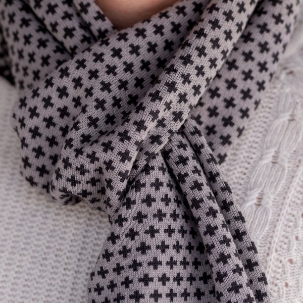 Meeste salli väikeseks geomeetriliseks mustriks on õnne toov ja hoidev hanesilm. Sallil on tulenevalt koetüübist ühe poole põhja värv tumehall, teise poole oma heledam hall.