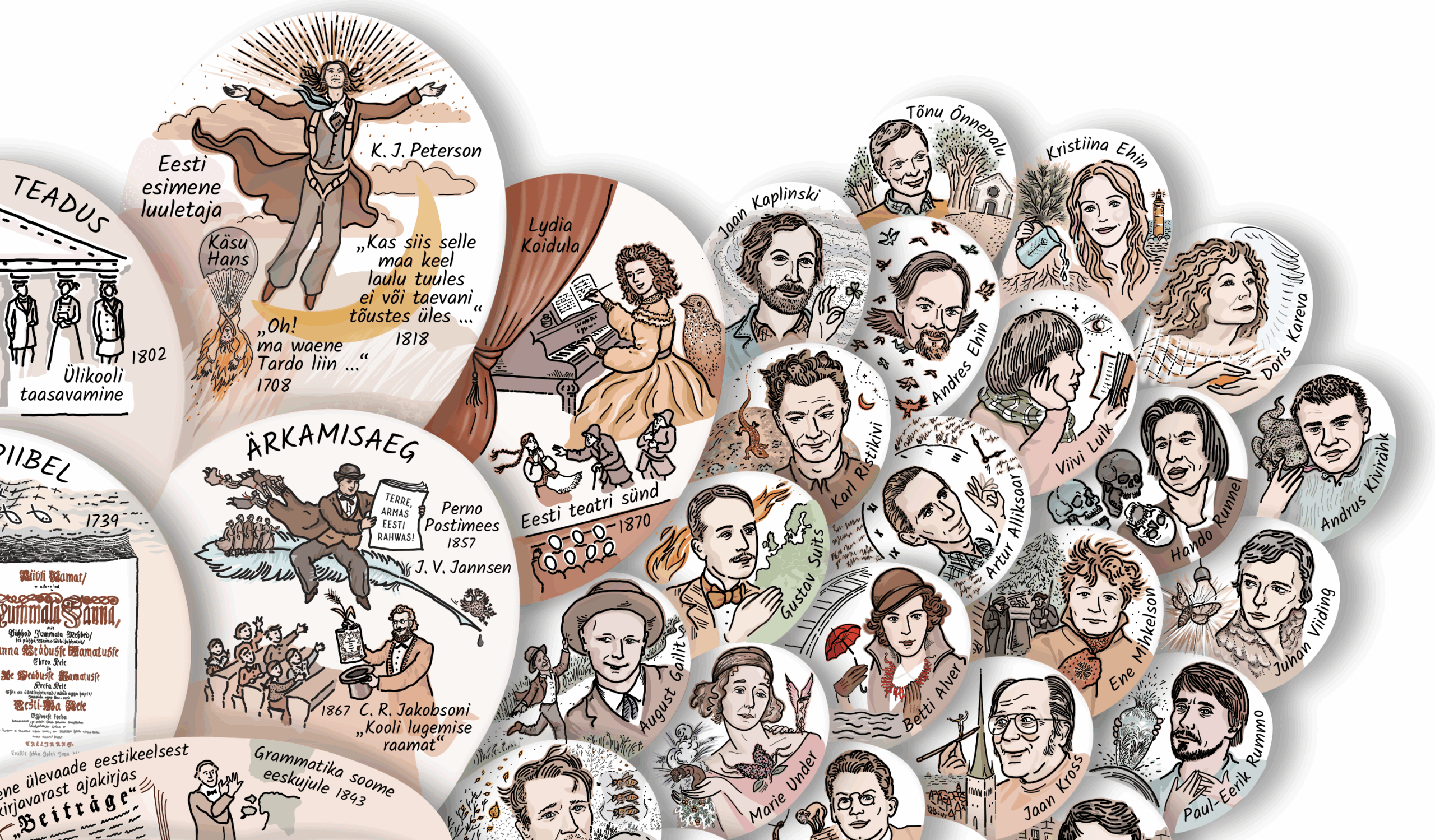 500 aastat tagasi sai alguse eestikeelse raamatu lugu. Raamatuaastal ERMi A-osa fuajeesse loodaval aabitsakuke pea kujulisel seinapannool on kunstnik Siiri Taimla-Rannala vaimuka pildikeele abil kogu selle kireva loo üles joonistanud nii, et nähtavaks saab ka eesti kirjakeele, lugemise, hariduse ja kirjanduse lugu.